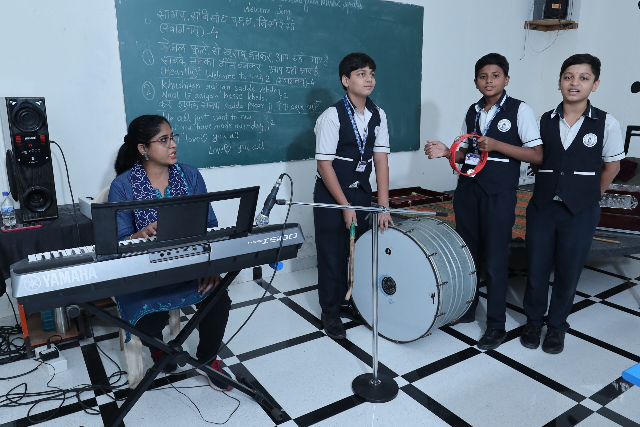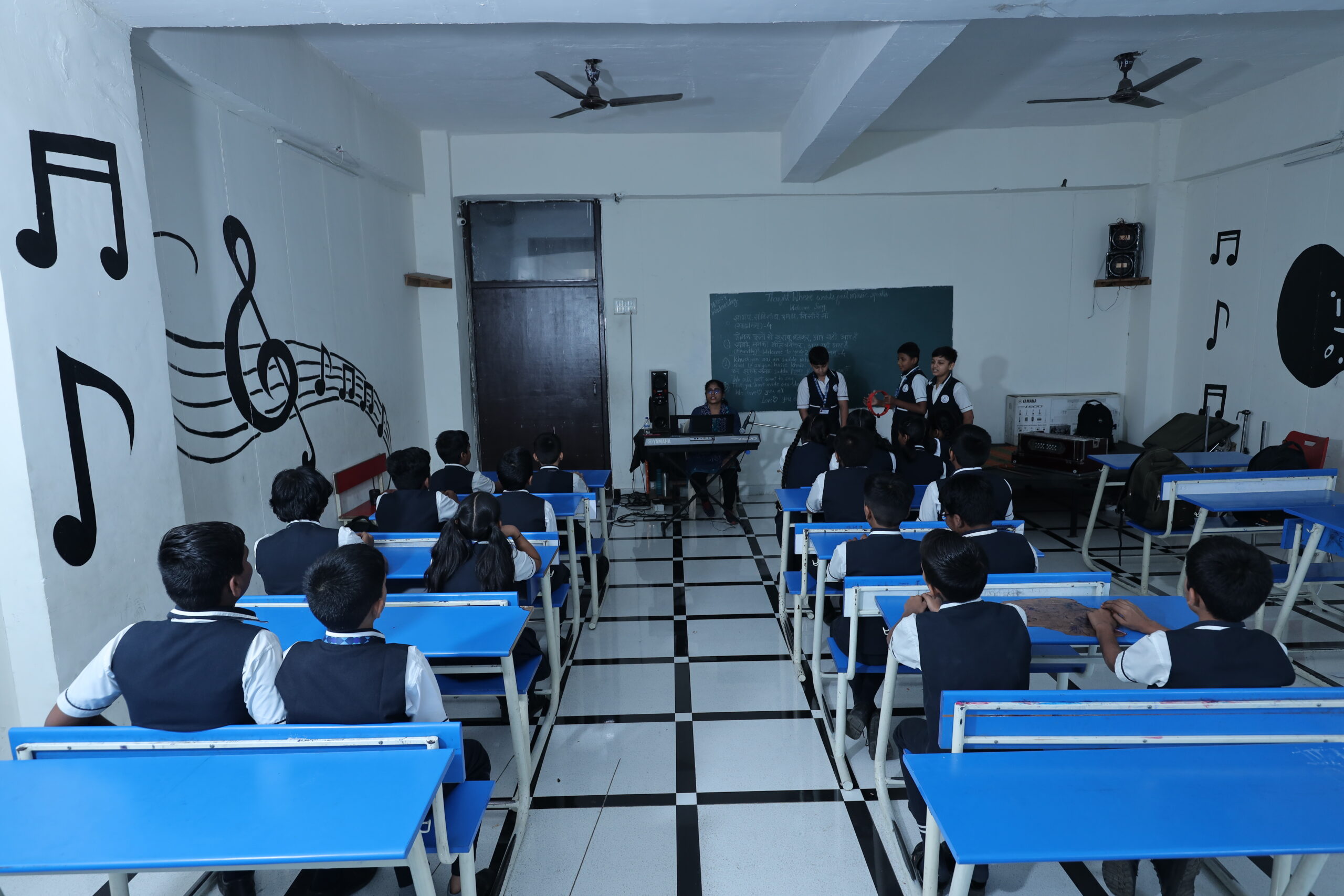 Music classes available in the school with different music instruments which are for Indian music and western music.Both music classes which are based on different pattern are available in different rooms .We have more qualified and more experienced teachers available for classes which have deep knowledge and keen knowledge of music.Indian Classical and folk dance with multiple varieties and Indian Rock and Indian Pop are also teach and in Western Pop music,Western Rock and Scales may be described according to the number of different pitch.
